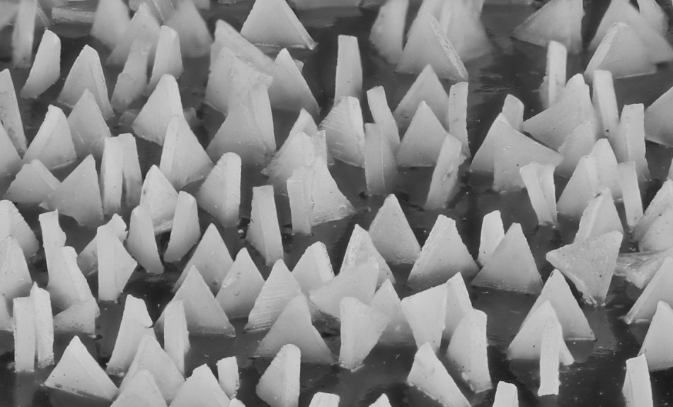 The VICTOGRAIN abrasive grain triangles are identical in shape and size and their cutting edges are applied to the workpiece at the optimum angle, meaning the grain needs very little energy to penetrate the workpiece.
