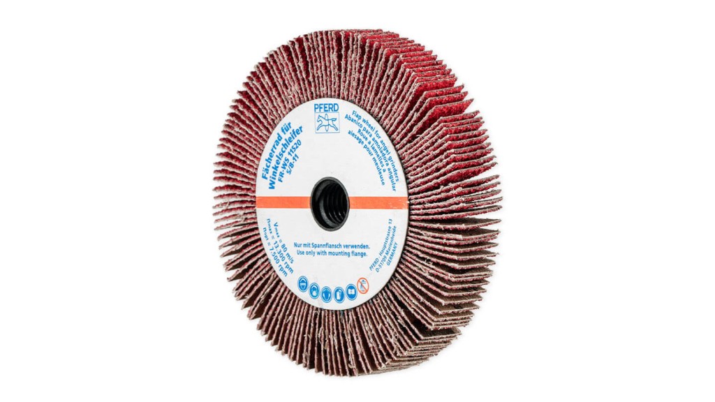 On mounted flap wheels, the flaps made of coated abrasive are arranged radially around the tool axis in a fan-type structure. Their flexibility enables them to adapt perfectly to the contours of the workpiece. The abrasive grain is embedded in the sturdy, flexible cloth backing material by means of a resinoid bond.