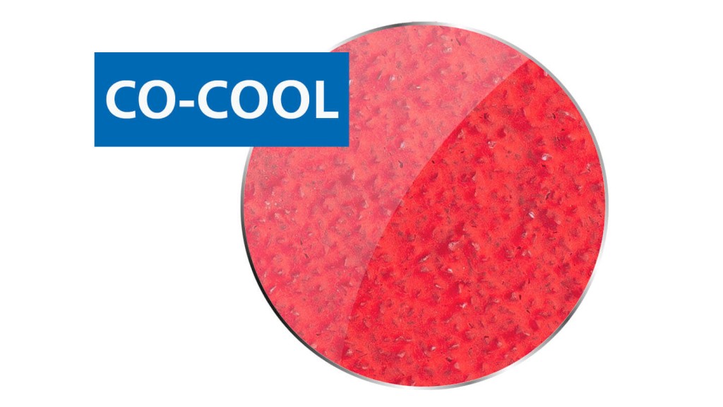 A constant high level of performance is achieved through the self-sharpening ceramic oxide grain. The CO-COOL ceramic oxide grain has active grinding additives in the coating which achieve a significantly higher stock removal rate, prevent clogging and result in cooler grinding.